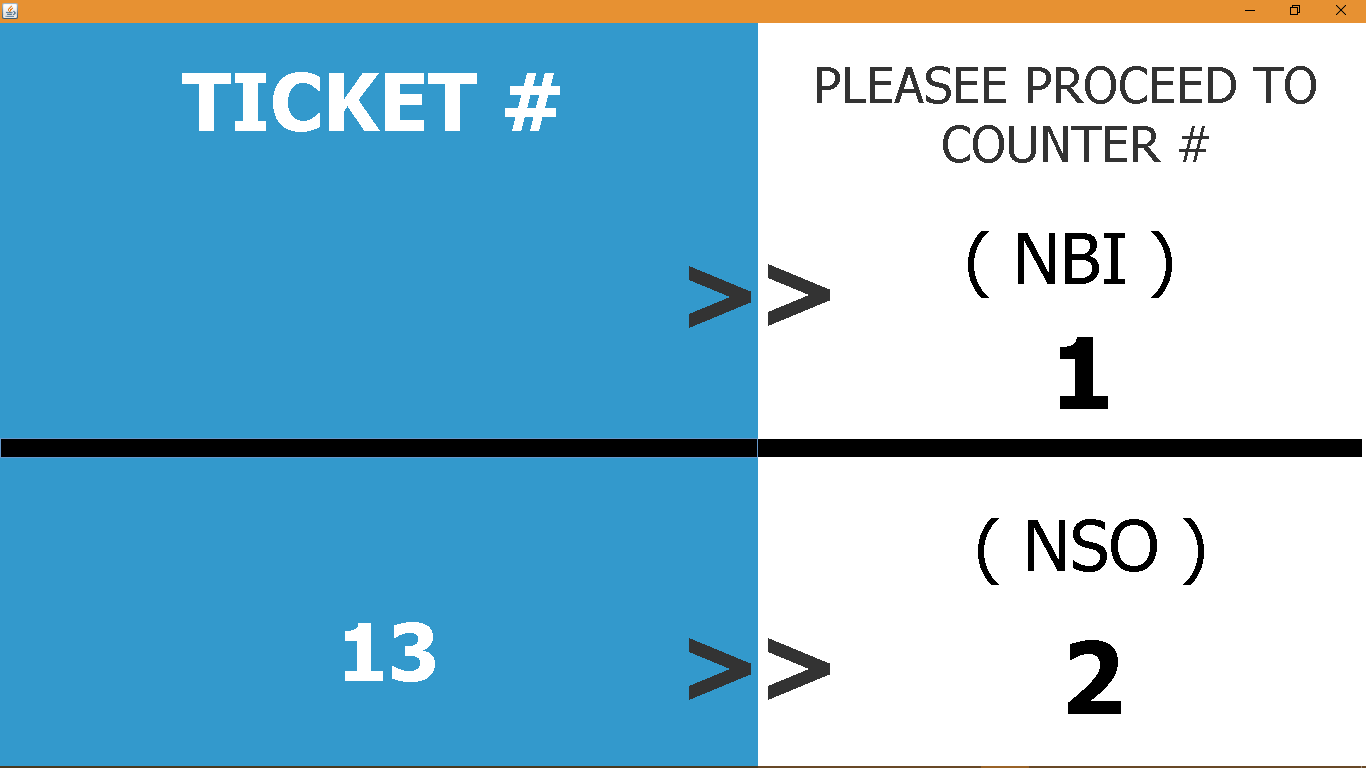This is the view of for the customer where they see the queue number and in what window they will go it also integrated with a sound.